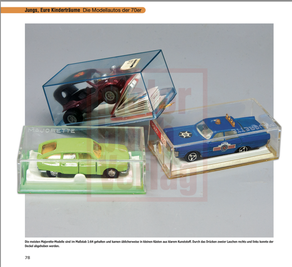 Speelgoedauto's van Siku, Matchbox, Hot Wheels, Corgi & Co. stonden ooit in elke kinderkamer. Sommigen begroeven ze in de zandbak, anderen raceten liever op het tapijt in de woonkamer, maar op een gegeven moment belandden de kleine runabouts op zolder of in de kelder, werden weggegeven of vergeten. Jörg Trüdinger wekt de dromen van de kinderkamer uit hun sluimering en doet met veel eigentijdse kleuren denken aan autoklassiekers in miniformaat, die tegenwoordig druk worden verhandeld op vlooienmarkten. Een boek met foto's en herinneringen waar zelfs doorgewinterde dames en heren aan kunnen terugdenken.
