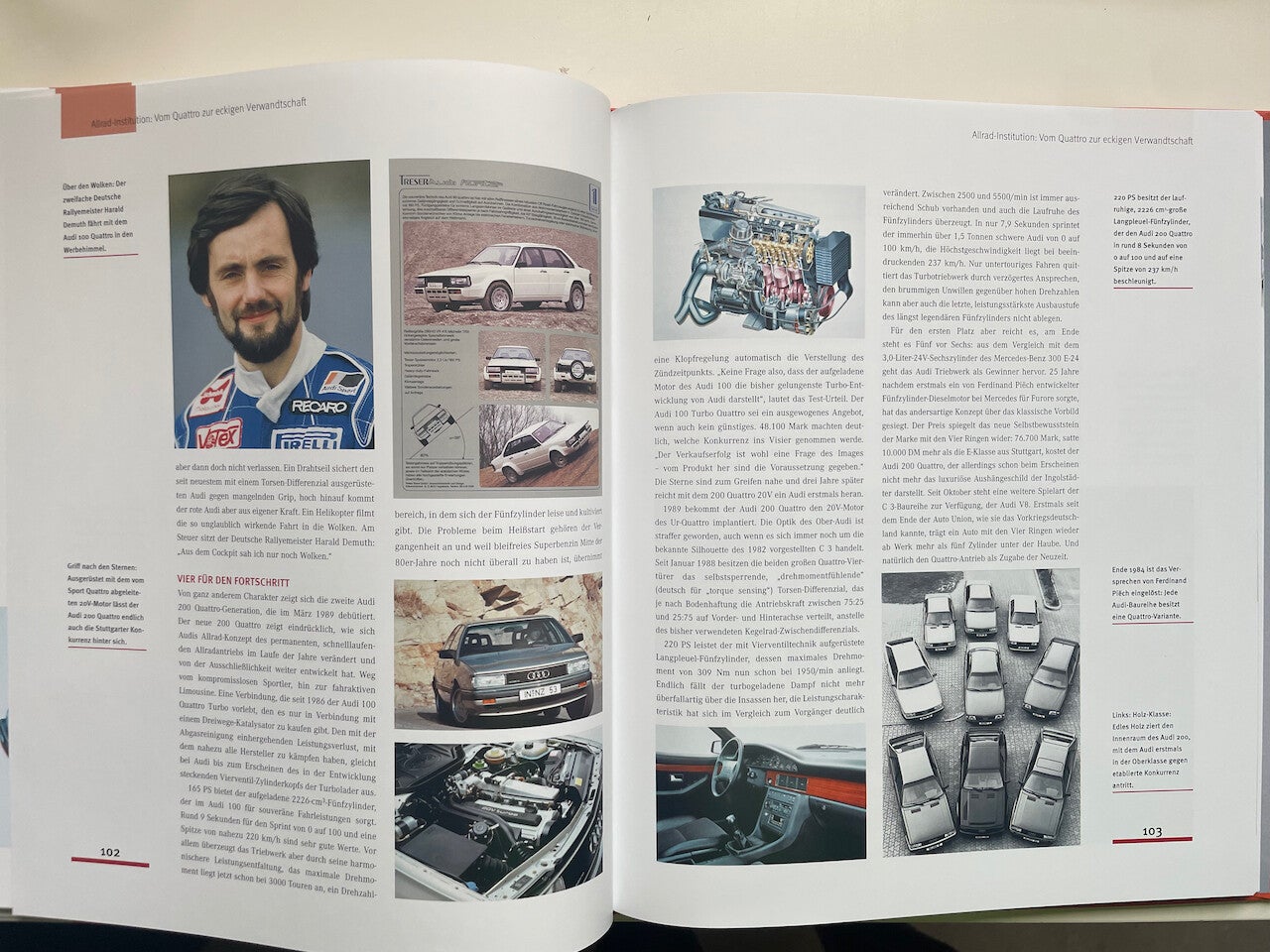 Meer dan 30 jaar na zijn presentatie heeft het voertuig met vierwielaandrijving uit Ingolstadt allang een cultstatus bereikt. Toen hij in 1980 op de Autosalon van Genève werd gepresenteerd, was hij de eerste in massa geproduceerde auto met vierwielaandrijving. In de jaren die volgden bleek de alliantie van de vier ringen met de beste rallyrijder ter wereld, Walter Röhrl, onverslaanbaar. In het boek over een van de interessantste hoofdstukken in de ontwikkeling van voertuigen, toont auteur Jan-Henrik Muche de geschiedenis van de ontwikkeling vanaf de eerste studie via de eerste prototypes tot serieontwikkeling.