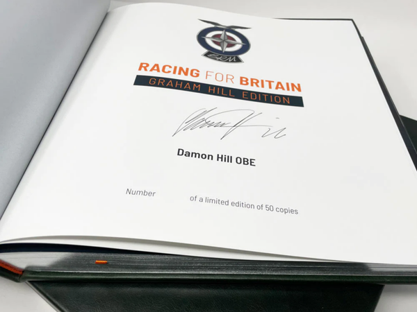 BRM - Racing for Britain (Graham Hill Edition) is gebonden in donkergroen leer met oranje tekst en een geëmailleerde BRM-badge verzonken in de omslag. Gestileerde afbeeldingen van Graham's beroemde helmontwerp op de omslag en rug. Deze editie wordt gepresenteerd in een bijpassende donkergroene, in leer gebonden slipcase. Er zijn slechts 50 exemplaren beschikbaar, elk gesigneerd door Damon Hill OBE. £ 50 van elk verkocht exemplaar wordt verdeeld onder de door de familie Hill gekozen goede doelen: Springfield Youth Club en het Halow Project.