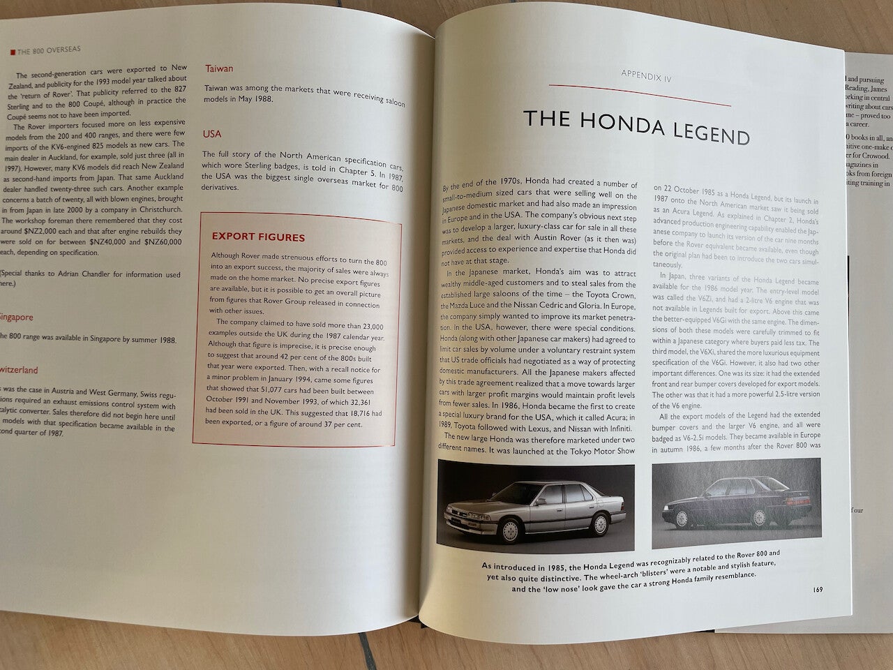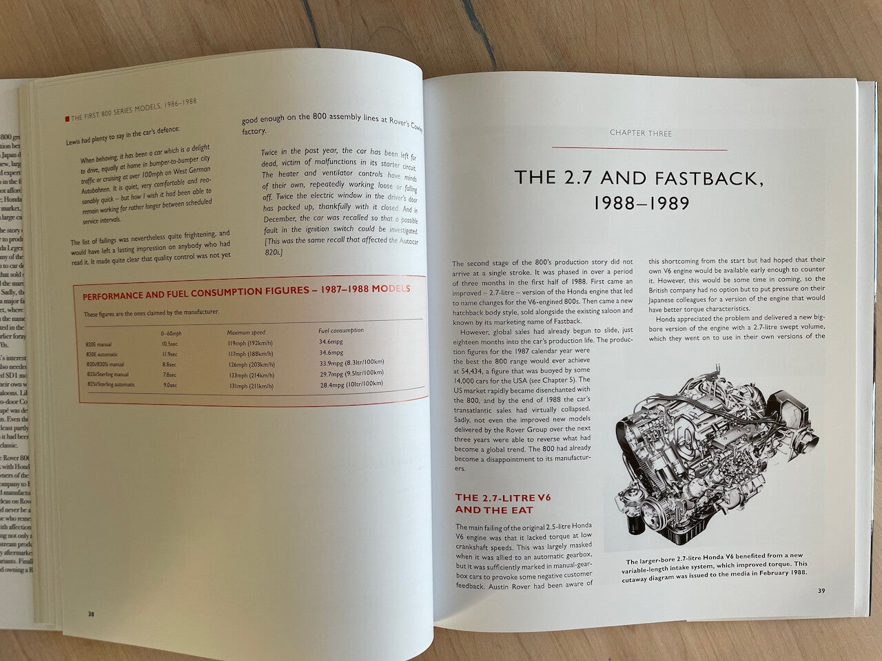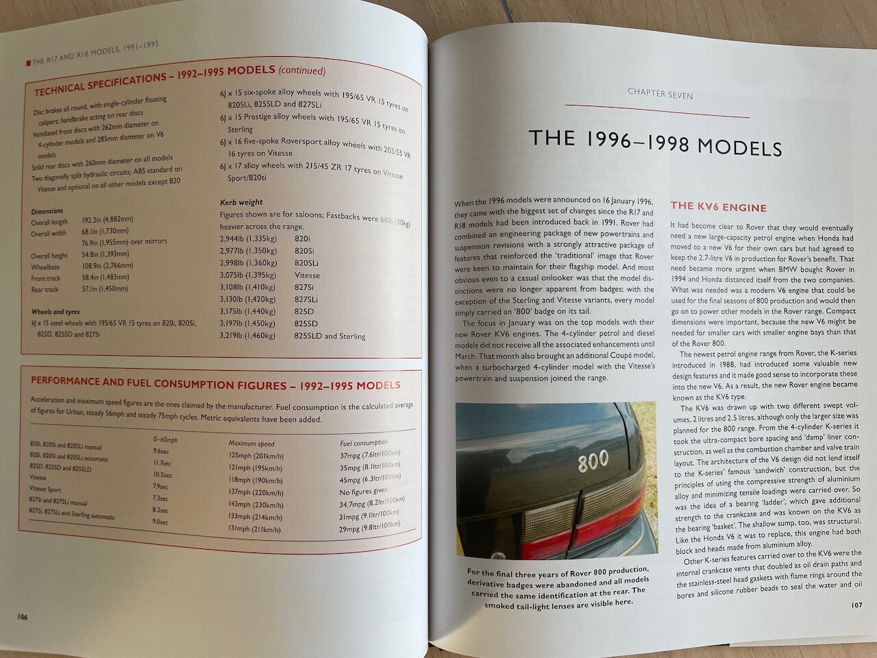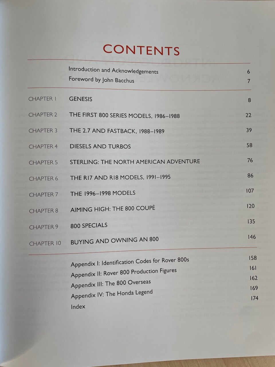 De Rover 800 is ontstaan uit een baanbrekende samenwerking tussen Rover in Groot-Brittannië en Honda in Japan in de jaren tachtig. Dit boek vertelt het verhaal van hoe de twee bedrijven samenwerkten om de Rover 800 en zijn neef, de Honda Legend, te produceren. Voor degenen die zich de grote voorwielaangedreven Rover met genegenheid herinneren, geeft dit boek de volledige geschiedenis weer, kijkend naar het ontwerp en de ontwikkeling van alle modellen: sedans, Fastbacks en Coupés; de Sterling in Noord-Amerika; hedendaagse aftermarket-aanpassingen; Politiegebruik en exportvarianten. Er is een nuttig hoofdstuk over het kopen en bezitten van een Rover 800 en het boek is geïllustreerd met 250 kleuren- en zwart-witfoto's.