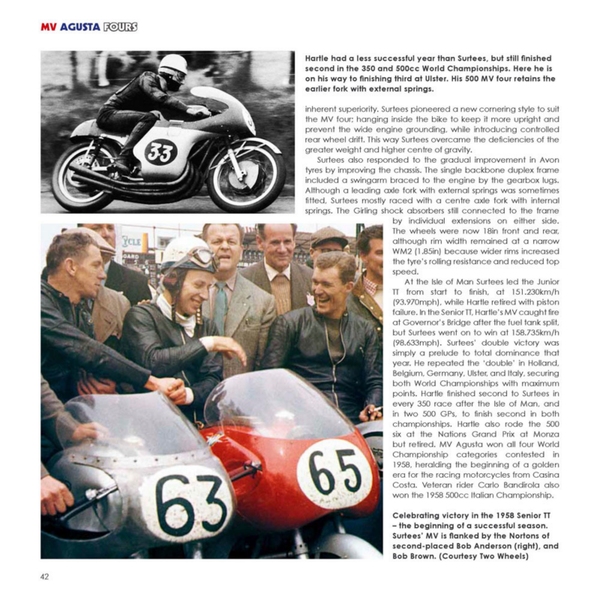 De klassieke viercilinder van MV Agusta domineerde vanaf 1956 tien jaar lang de Grand Prix-races. Toen hij in 1966 werd vervangen door de nieuwe triple, besloot graaf Agusta om de Four in beperkte aantallen beschikbaar te maken als productiemotor. Om te voorkomen dat kapers hem zouden ombouwen tot een Grand Prix-racer die de fabriek in verlegenheid zou kunnen brengen, bepaalde hij dat het 600 cc moest zijn en een cardanas moest hebben. De touring 600 evolueerde uiteindelijk naar de 750 Sport en GT, en ten slotte de America, maar MV Fours werden altijd in extreem kleine aantallen gebouwd. Zoals het een motor betaamt die John Surtees, Gary Hocking en Mike Hailwood meerdere Wereldkampioenschappen opleverde, was de technische specificatie verbluffend en blijft dat tot op de dag van vandaag. Deze magnifieke motor vormde altijd de kern van de MV Agusta, en het was deze motor die de legende creëerde en in stand hield. Ian Falloon, een van 's werelds meest vooraanstaande motorhistorici, is de auteur van verschillende boeken over motorfietsen en levert vele jaren regelmatig bijdragen aan een aantal motortijdschriften over de hele wereld, gespecialiseerd in Italiaanse merken, met name Ducati, Moto Guzzi, Laverda en , natuurlijk, MV Agusta.
