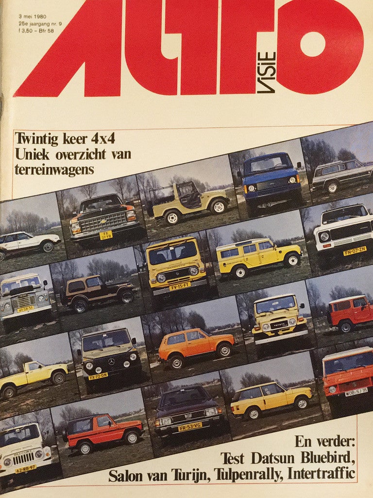 - Twintig keer 4x4 met Ford Transit 4x4, AMC Eagle, Chevrolet Blazer, Daihatsu Taft, Jeep Cherokee, Land Rover, International Scout, Jeep CJ7, Lada Niva, Mercedes-Benz G, Toyota Landcruiser, Range Rover, Subaru, Suzuki, Volkswagen Iltis (16p)