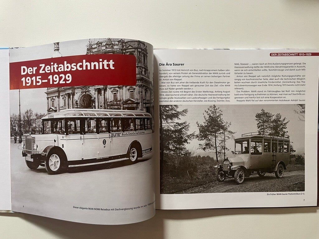 Met het idee om in de toekomst samen vrachtwagens en bussen te bouwen, begon MAN tijdens de Eerste Wereldoorlog een samenwerking met het Zwitserse bedrijf Saurer. Omdat dit echter door de Duitse legeradministratie werd verhinderd, ging MAN op eigen kracht verder. MAN produceert zijn vrachtwagen- en busseries nu onder de naam MAN Truck & Bus. In 2015 vierde het bedrijf zijn 100-jarig jubileum in de busbouw.