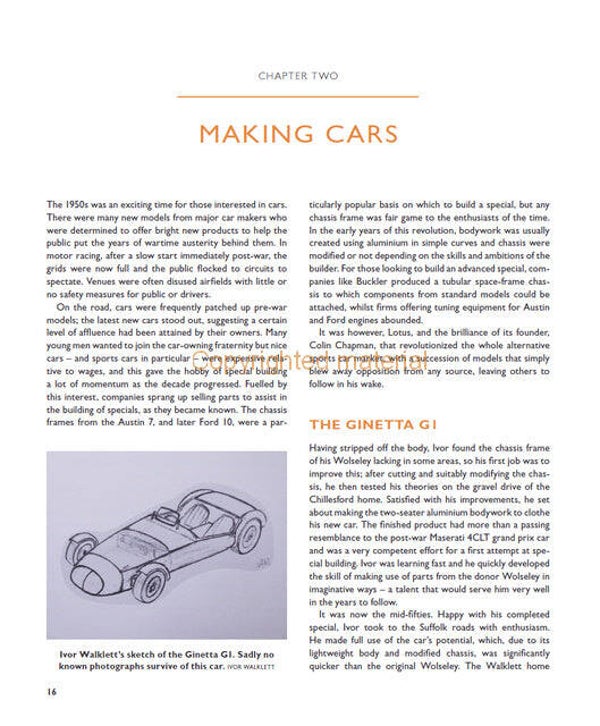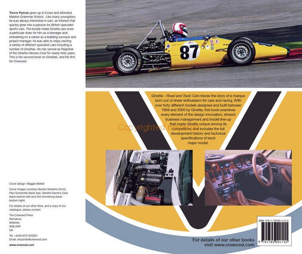 Gedreven door Ivor Walkletts flair voor design en verlangen om zijn eigen auto te bouwen, ontwikkelde het merk Ginetta zich snel van een hobby tot een bedrijf. Het merk dat synoniem staat voor de vier broers Walklett groeide vervolgens van zijn bescheiden wortels uit tot een serieuze kracht in de autosport en een volumefabrikant van wegauto's. Ginetta - Road and Track Cars schetst het verhaal van een merk dat is geboren uit puur enthousiasme voor auto's en racen. Met meer dan veertig verschillende modellen die tussen 1958 en 2005 door Ginetta zijn ontworpen en gebouwd, onderzoekt dit boek elk element van de ontwerpinnovatie, het slimme bedrijfsmanagement en de modellenreeks die Ginetta uniek maakten ten opzichte van zijn concurrenten, en bevat het de volledige ontwikkelingsgeschiedenis en technische specificaties van elk belangrijk model.