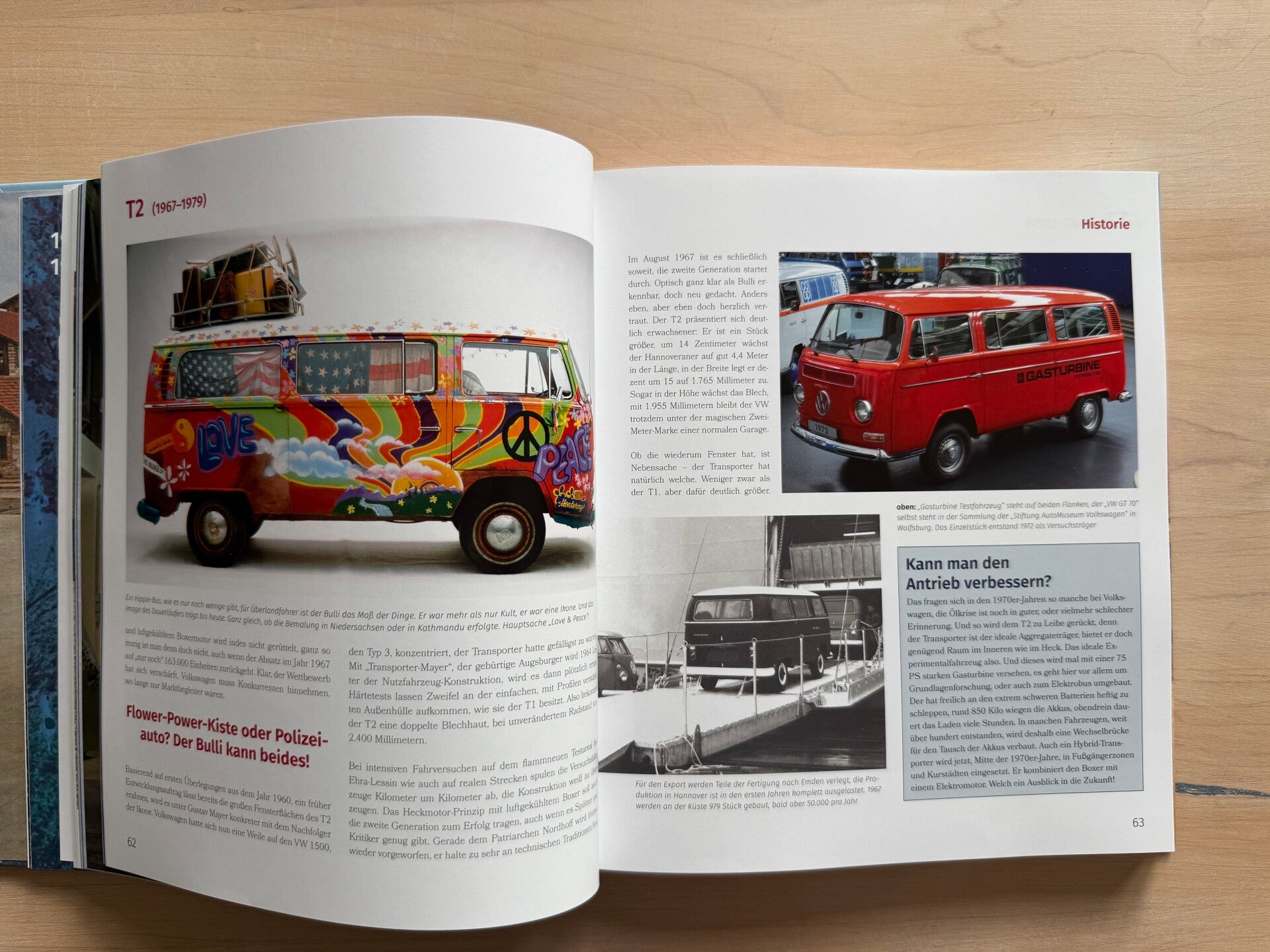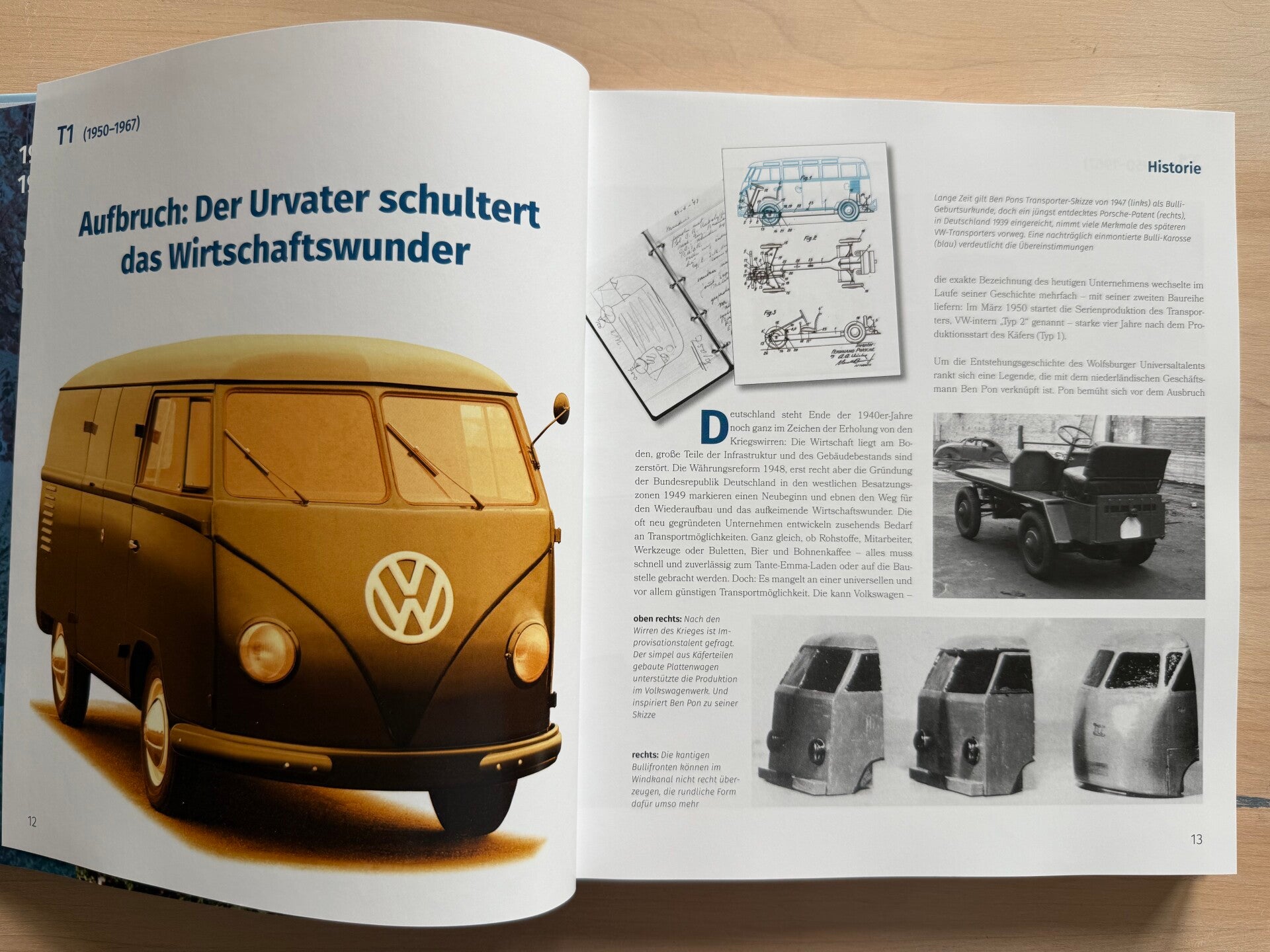 Dit 240 pagina's tellende jubileumboek bevat zo'n 300 fascinerende Bulli-foto's en verhelderende en interessante feiten. Briljant geïllustreerd, biedt dit boek een gedetailleerde geschiedenis van alle Bulli-generaties, van de originele T1 tot en met de zevende generatie. Dit boek is een absolute blikvanger voor elke Bulli-fan! Van camper tot Samba-bus, er is een enorme hoeveelheid eigentijdse foto's en afbeeldingen van liefdevol gerestaureerde exemplaren van alle carrosserievarianten. Dit uitgebreide, geïllustreerde en geïllustreerde boek ademt pure Bulli-fascinatie, maar biedt ook veel informatie over de techniek van de verschillende modellen en series. Hoe een spartaanse T1 werd omgebouwd tot Multivan, hoe fans niet alleen van de zeer oude modellen houden, maar ook van de nieuwere bussen, en hoe ze alle voordelen van het busleven vieren – dit boek viert dit alles en werpt ook een blik op het heden met de ID.Buzz en de nieuwste busgeneratie.