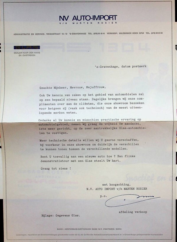 Glas 1304 - 1966/NL (incl. prijslijst en persoonlijke brief)