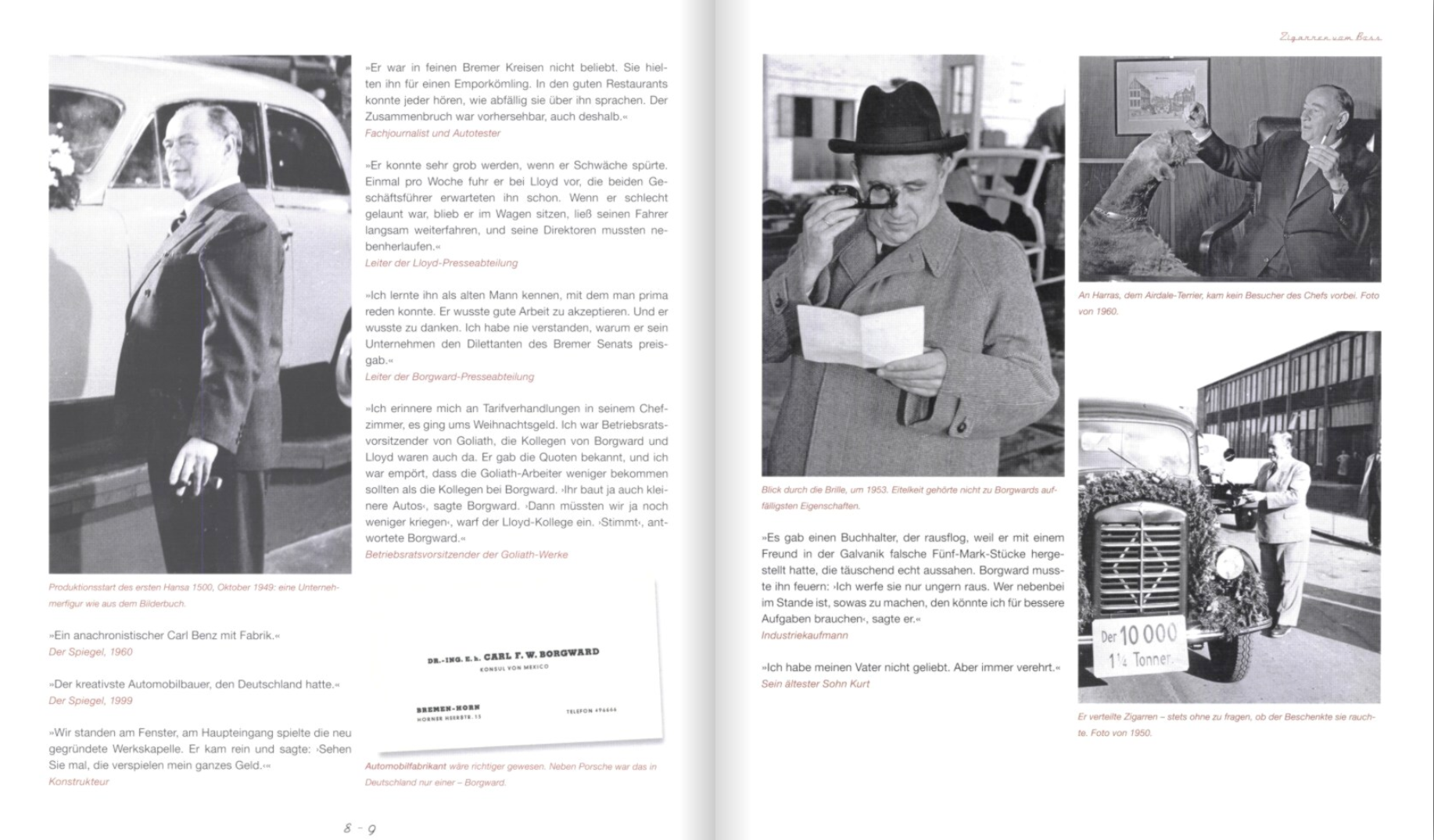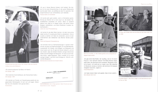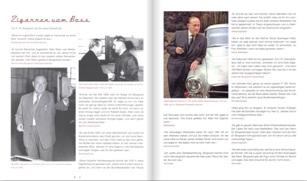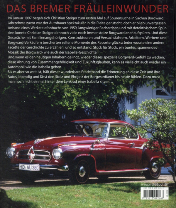 Het boek beslaat de geschiedenis van het klassieke merk Borgward tot aan de herlancering. Christian Steiger sprak met hedendaagse getuigen en wisselde ideeën uit met leden van de familie Borgward, ontwerpers, testrijders, montagewerkers en voormalige verkopers. Ze vertelden vanuit hun herinneringen en keken in de laden en kelders, waarin nog uitgebreide documenten lagen. De bevindingen zijn verwerkt in dit boek, dat op een nieuwe en actuele manier het verhaal vertelt van het cultmerk rond de iconische Isabella.